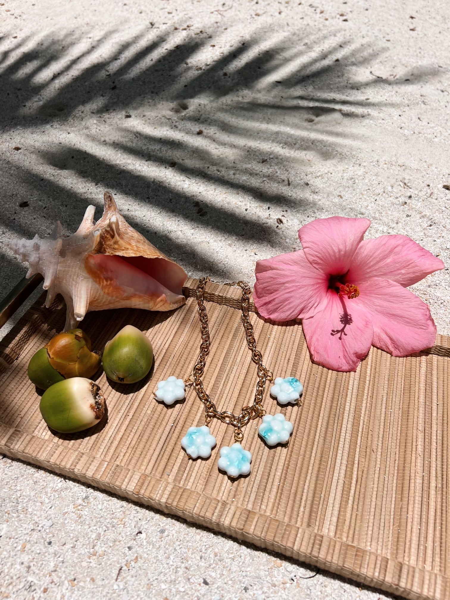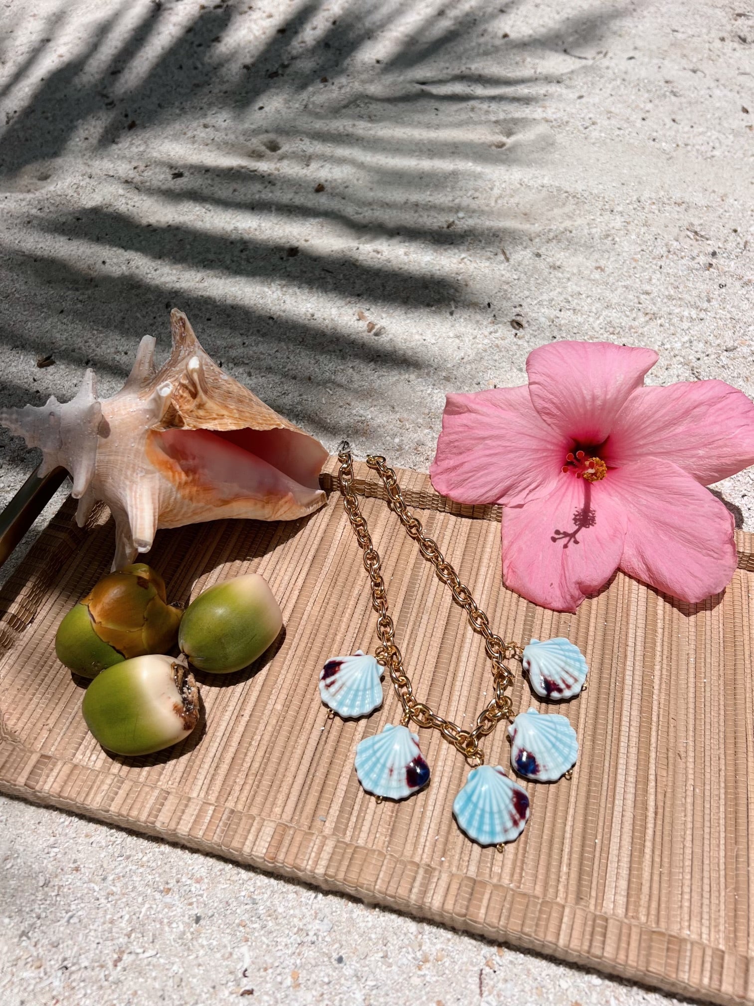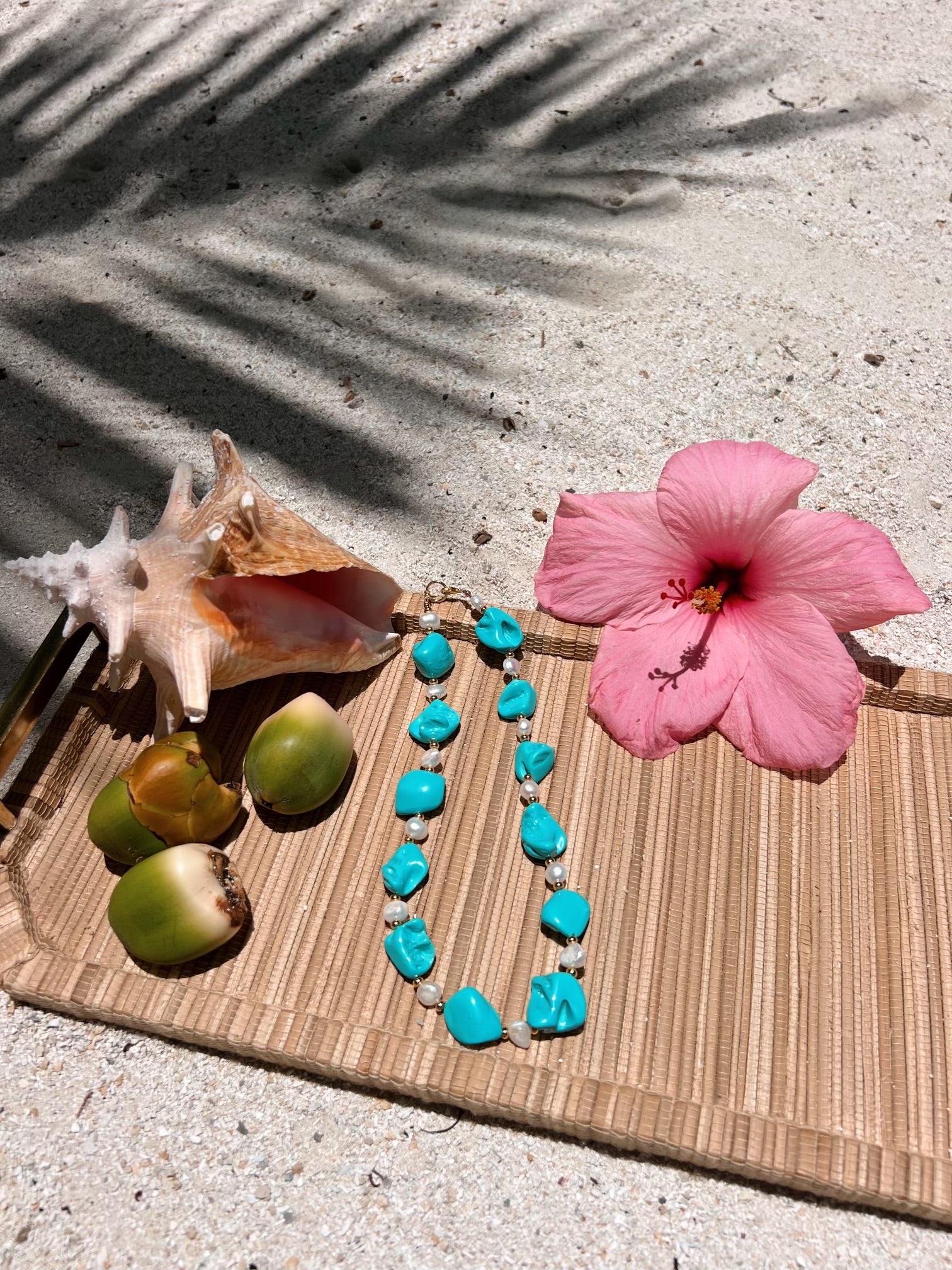 All one of a kind custom pieces. These pieces are made out of real freshwater pearls, fire pearls, real conch shells, vintage ceramic charms, and shells from all over the world. All gold chains are 18k gold filled, hypoallergenic, nickel free, anti allergic, and tarnish proof.